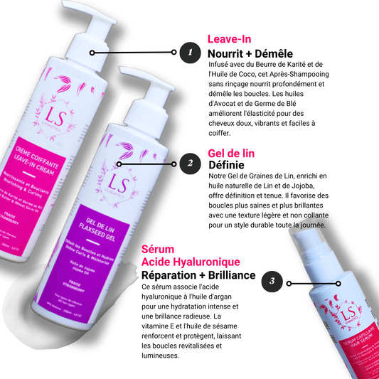 Êtes-vous à la recherche de produits cosmétiques naturels pour les cheveux bouclés? Ne cherchez plus, LS Cosmetics est là pour vous! Notre sélection de produits capillaires est spécialement conçue pour tous les types de boucles. Notre populaire gel de lin et notre après-shampoing sans rinçage sont parfaits pour définir et nourrir vos boucles, tandis que notre shampooing au lait d'avoine naturel aidera à nettoyer et à renforcer vos cheveux. Et avec nos options de livraison pratiques, y compris la livraison express avec suivi en Europe et dans le monde entier(France, Angleterre, Belgique, Espagne, emirates arabes unis, Canada, États-Unis...), il n'a jamais été aussi facile de mettre la main sur nos produits de qualité supérieure. Mais ne prenez pas notre mot pour argent comptant - de nombreux clients satisfaits ont été recommandés à nous par des amis ou des membres de la famille qui ont vu les résultats étonnants de nos produits de première main. Alors pourquoi attendre? Essayez LS Cosmetics dès maintenant et voyez la différence par vous-même!